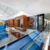 Le projet d'agrandissement du complexe administratif de Servier Canada a été élaboré en mettant l'accent sur la qualité de vie et le confort de ses occupants. Les espaces de bureaux à aire ouverte dotés de généreuses baies vitrées offrent une vue sur les environs boisés de la Cité de la Biotech de Laval, tandis que les salles de conférence s'ouvrent sur un atrium intérieur. Au-delà de sa vocation administrative et de recherche, ce bâtiment sert également d'espace de diffusion, avec une grande salle de formation divisible donnant sur un hall éclairé par le ciel.